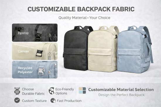 Choose from waterproof Oxford, nylon, polyester, RPET recycled fabrics, or corduroy. Durable, lightweight, and eco-friendly options to fit your needs.