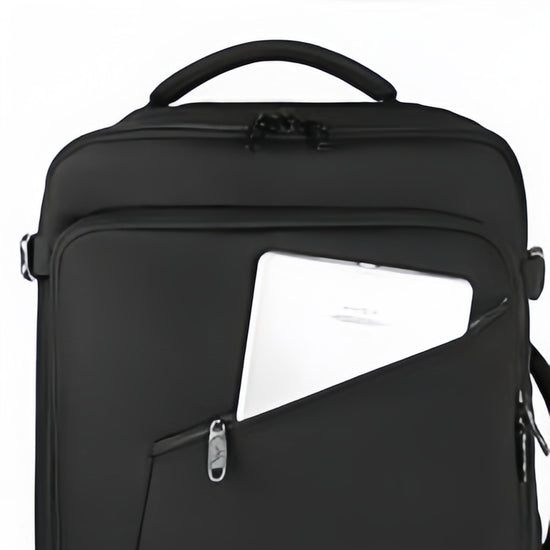 Zippered access pocket is perfect for business or travel essentials, from passport to tablet.