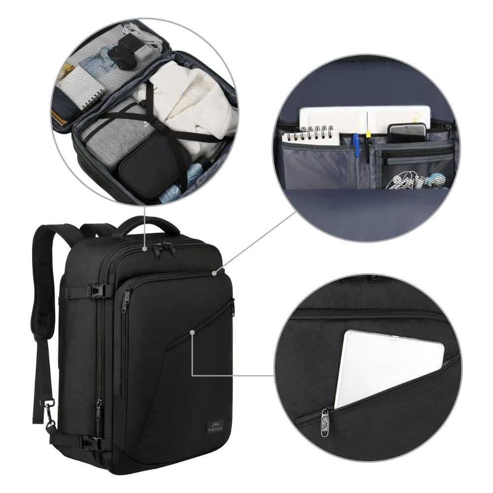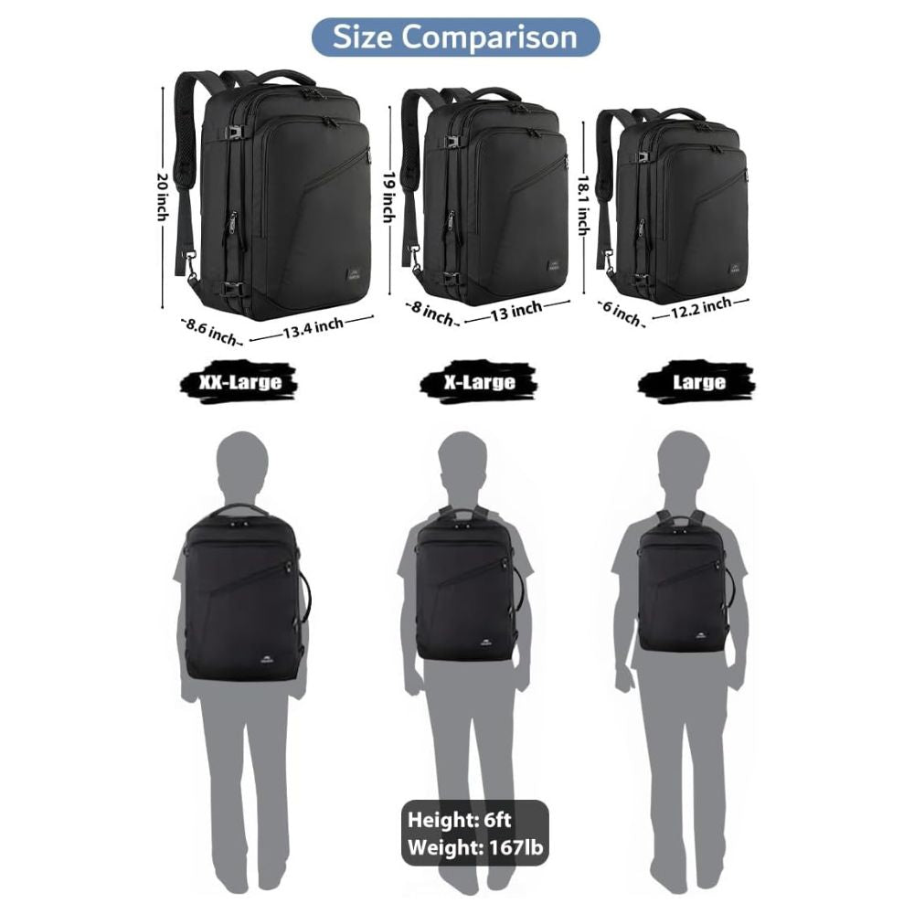 Der große Rucksack ist geräumig, um Habseligkeiten und das Nötigste für eine einwöchige Reise zu verstauen. Und seine anständige Größe macht es perfekt, um es als Handgepäck im Flugzeug mitzunehmen.