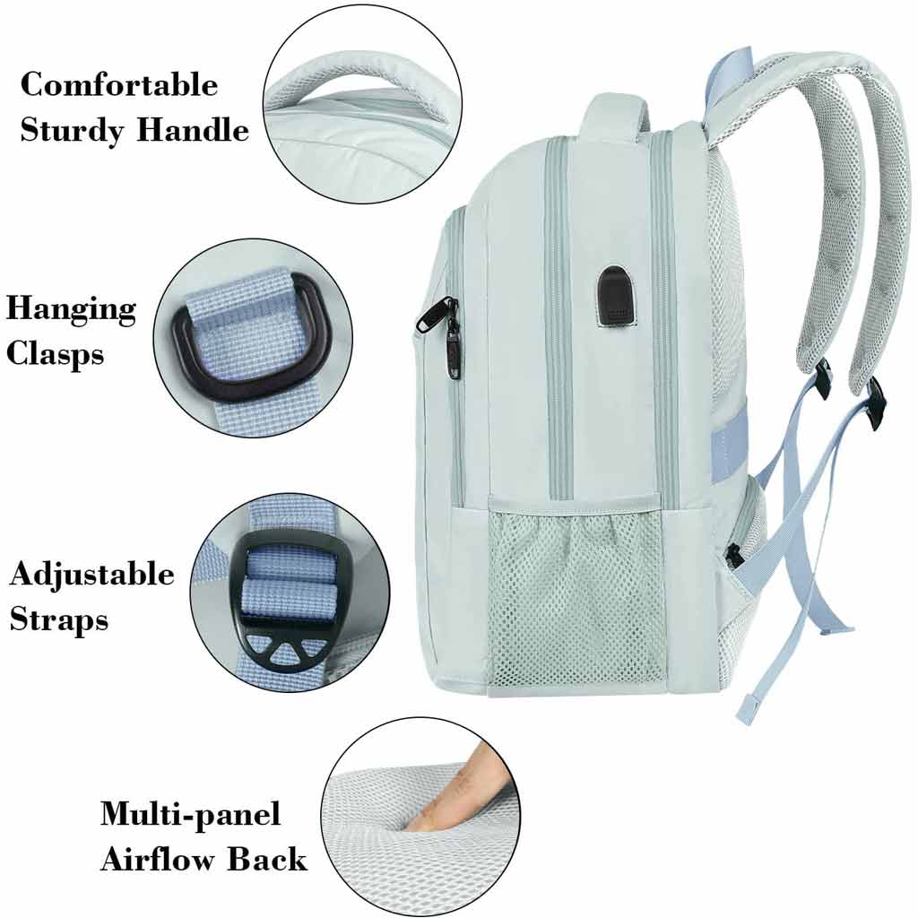 "I ordered this book bag due to a good price. I am thrilled with all the compartments, size and quality! It has a special section for her computer, books, and several areas to store things. It can charge phone, and is very comfortable on my shoulders."