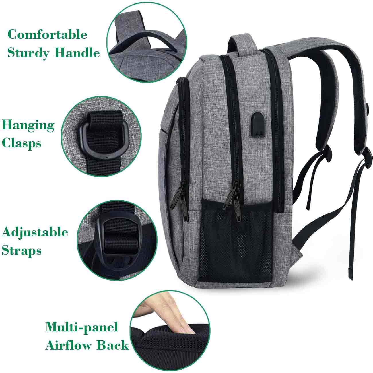 Mochila gris para portátil de 15,6 pulgadas Mlassic