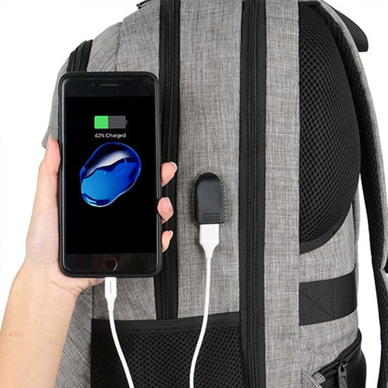 Durable travel backpacks with external USB charging port for you, it can easily and conveniently charge your smart phone, tablet and other electronic devices while walking.