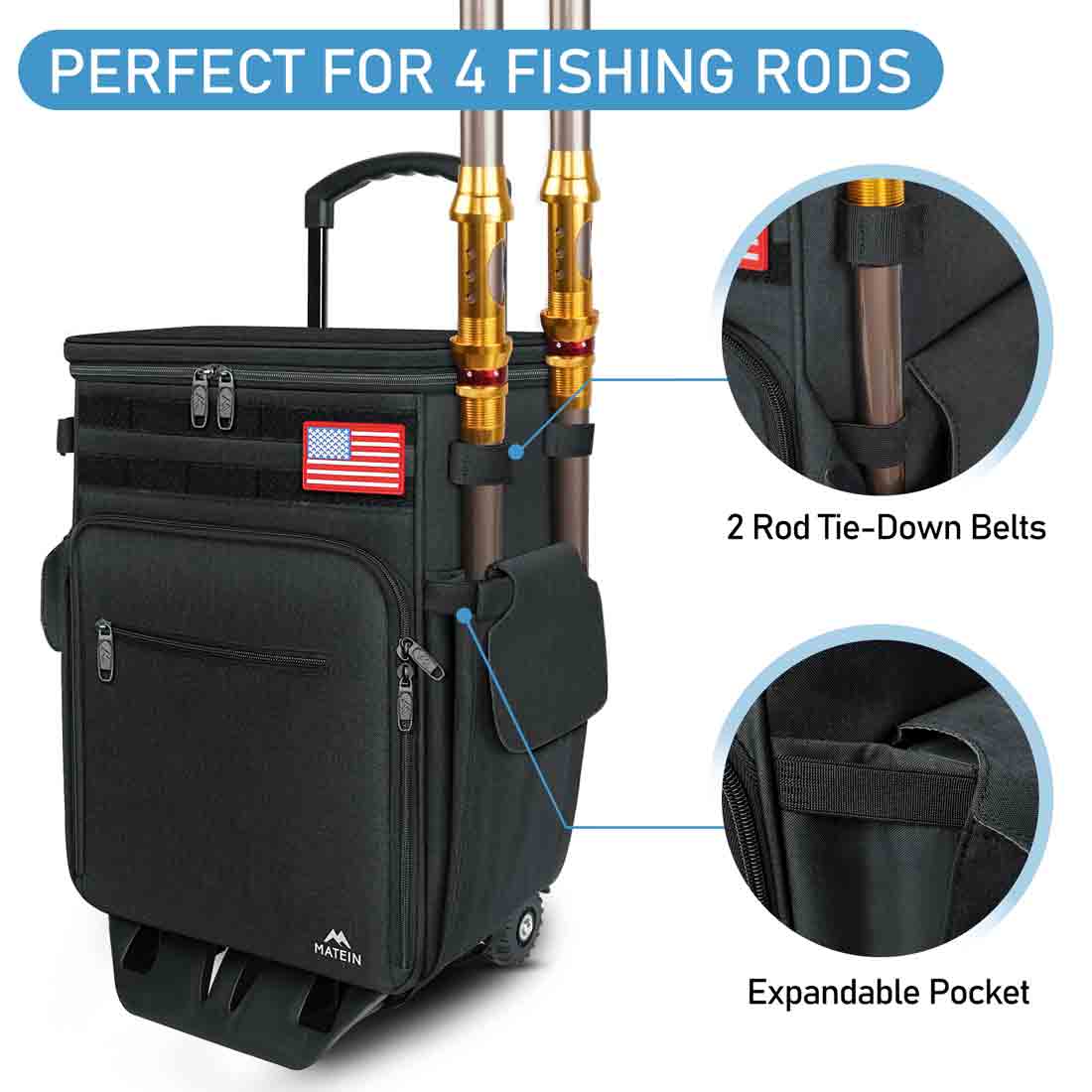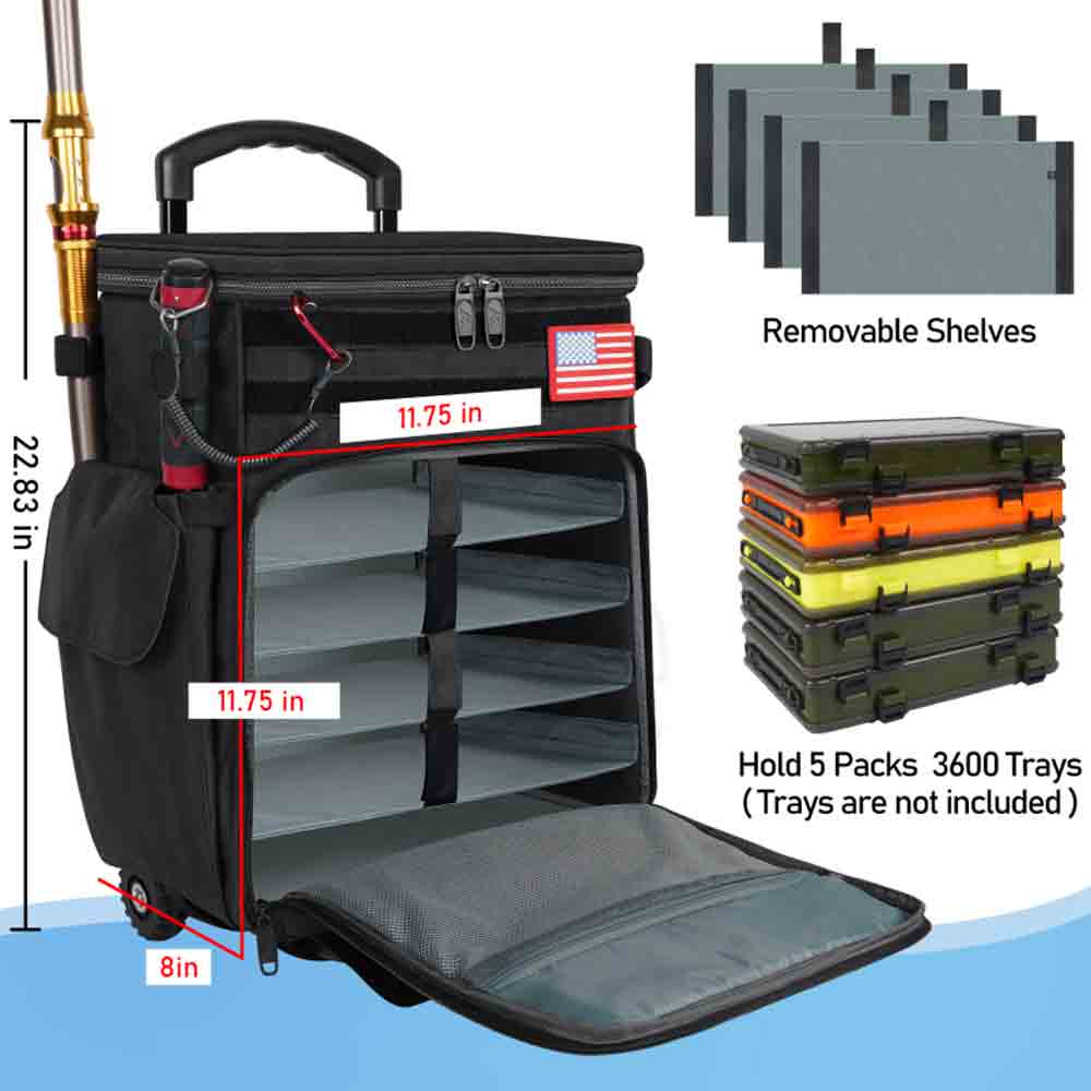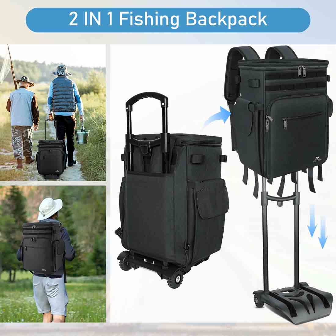 - 【Perfecto para exteriores】 La mochila de pesca con ruedas proporciona una forma menos laboriosa de transportar el equipo de pesca, lo que le permite disfrutar de la pesca al máximo. Además de pescar, también se puede usar en otras actividades al aire libre como caminatas, picnics, campamentos, visitas turísticas, etc. Grandes regalos de pesca para hombres y mujeres.