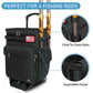 - 【Dos maneras de usarlo】 La mochila de pesca con ruedas con dos ruedas todoterreno facilita caminar sobre terreno irregular. El diseño desmontable del carro le permite elegir libremente cómo llevarlo cuando sale a pescar. El carro de doble barra sin botones se puede extender hasta 37 pulgadas