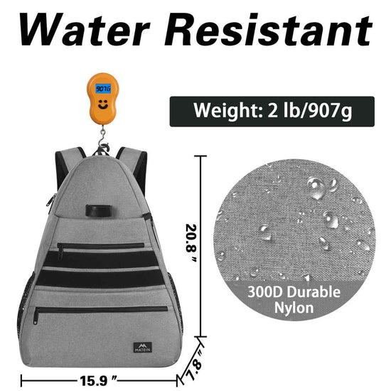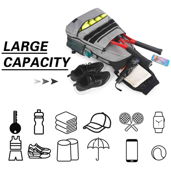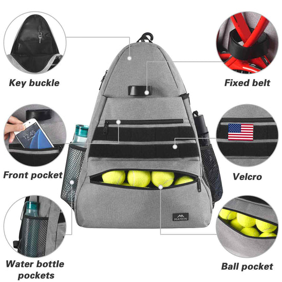 - Bolsillo para raquetas de tenis: sostenga dos raquetas de tenis de 27 pulgadas; Hay un cinturón fijo que puede arreglar la raqueta de tenis;