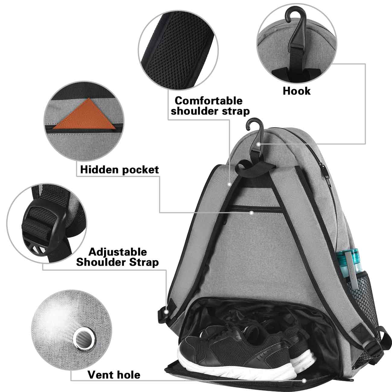 La mochila de tenis Matein presenta un diseño funcional innovador. Puedes guardar tus raquetas, pelota de tenis, botella de agua y zapatos en una mochila. Correa de hombro acolchada ajustable para mayor comodidad. La mochila de tenis no es solo una bolsa para raquetas de tenis, sino que también se puede usar como mochila de viaje, mochila escolar y otras bolsas deportivas. No querrás perderte esta moderna mochila de tenis.
