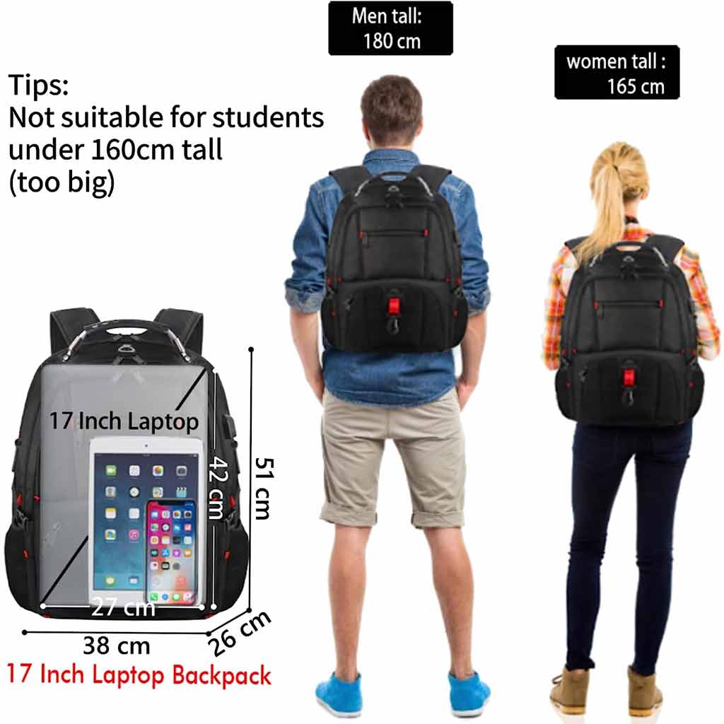 - Esta mochila grande no es solo una mochila de viaje, sino también una mochila para computadora portátil de 17 pulgadas, una mochila de negocios, una mochila para la escuela, una mochila para mujeres, una mochila para hombres, etc.