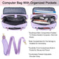 - DISEÑO CONVENIENTE Y CÓMODO: La correa de equipaje de la bolsa morada para computadora portátil se puede insertar y fijar al asa del carrito o la maleta, lo que la hace muy cómoda de transportar. en la seguridad del aeropuerto. La correa de hombro ancha desmontable y el asa resistente lo hacen portátil y le brindan otra opción de transporte como una bolsa de transporte para computadora portátil, una bolsa de hombro para computadora portátil o un maletín para computadora portátil