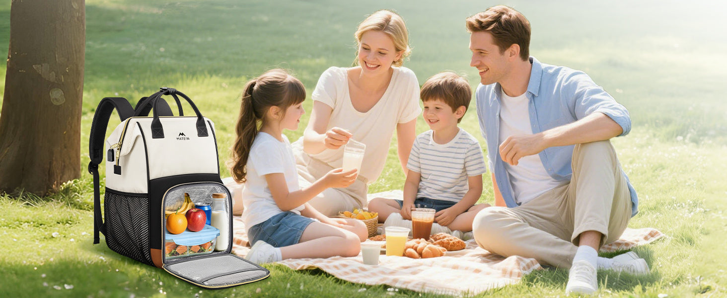USB charging part of lunch backpack for women makes it easy to charge your phone while you're walking, convenient and practical.