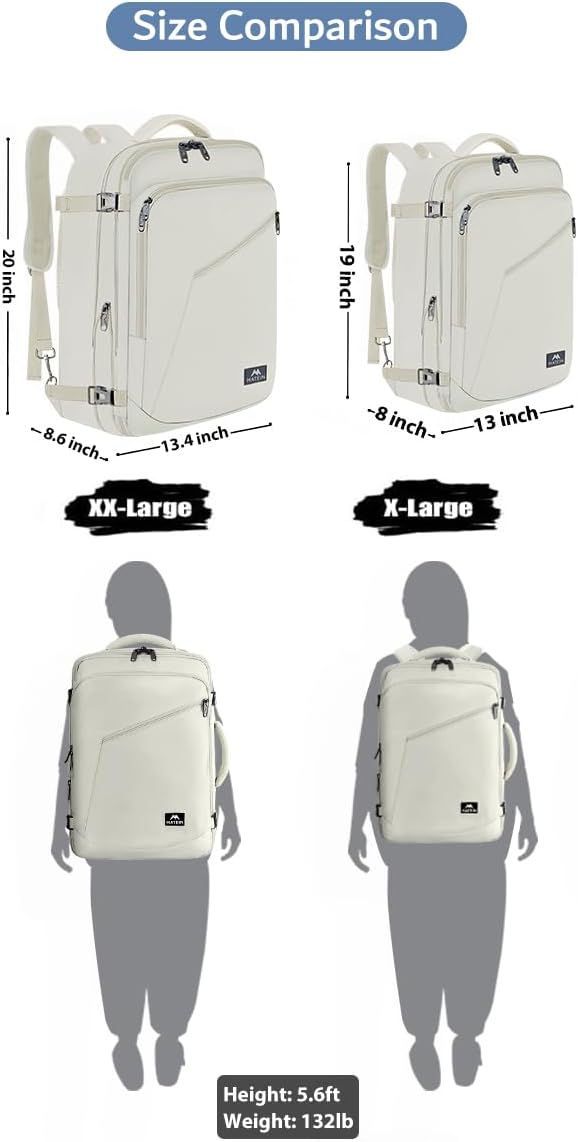 Large backpack is spacious enough to prepare a one-week trip. Inner compression straps are generous enough in length and can prevent your belongings from shifting.