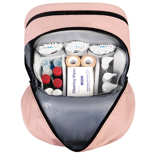 The main compartment of this nursing bacpack is design to fit a Removable Medical Supplies Organizer. With the Organizer, you can organize various large medical stuff.