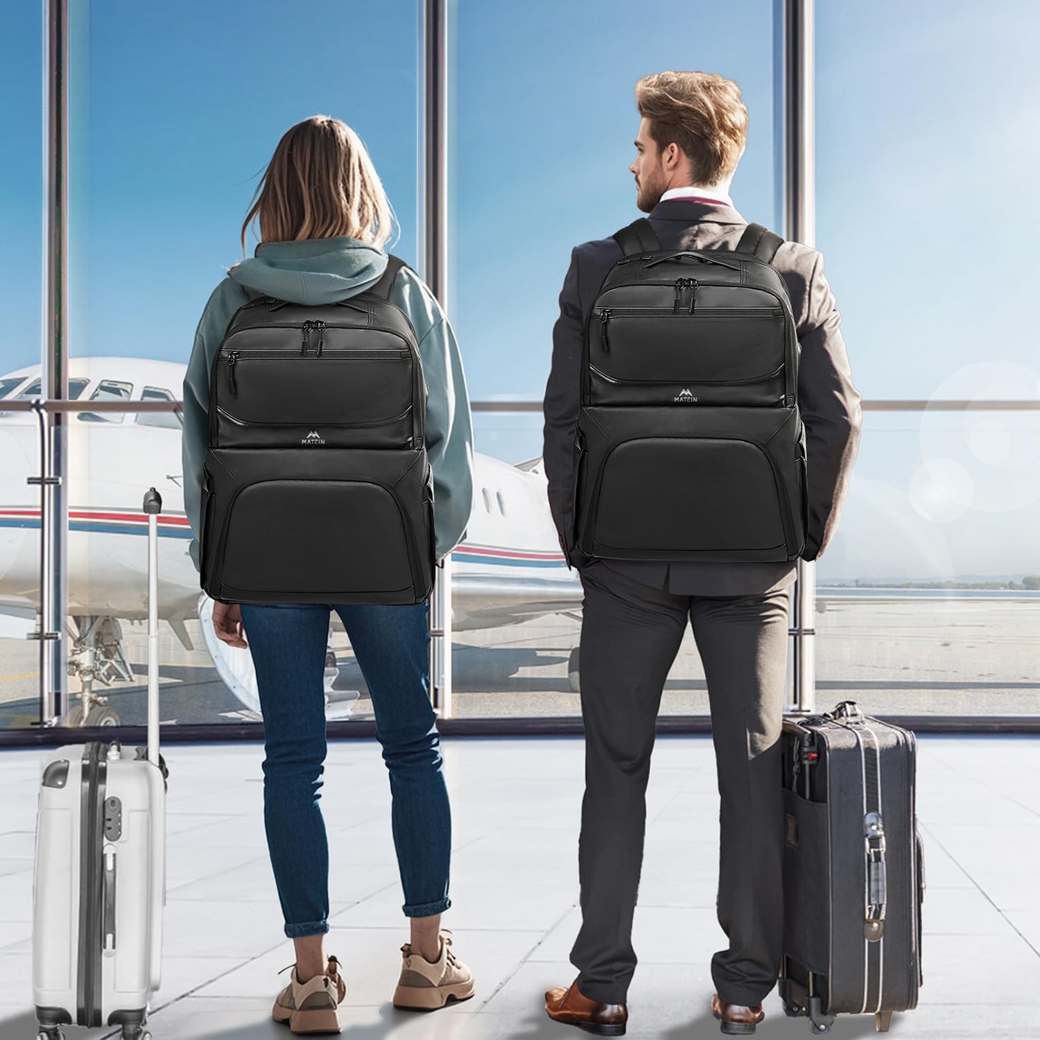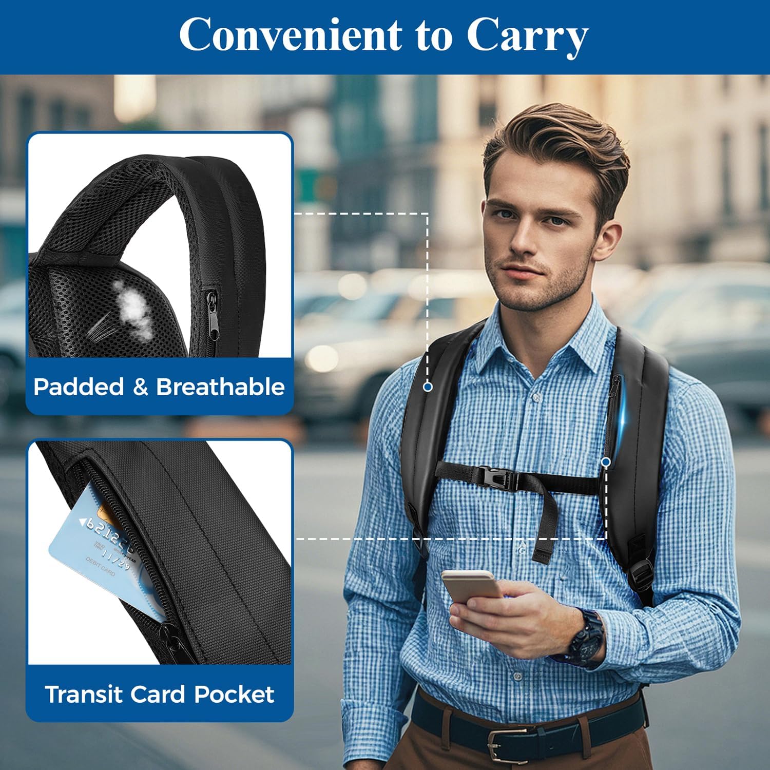 Work backpack features a thick, wide top handle for easy carrying as a handbag or backpack during business trip.