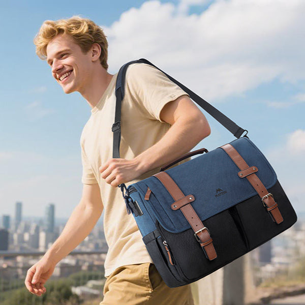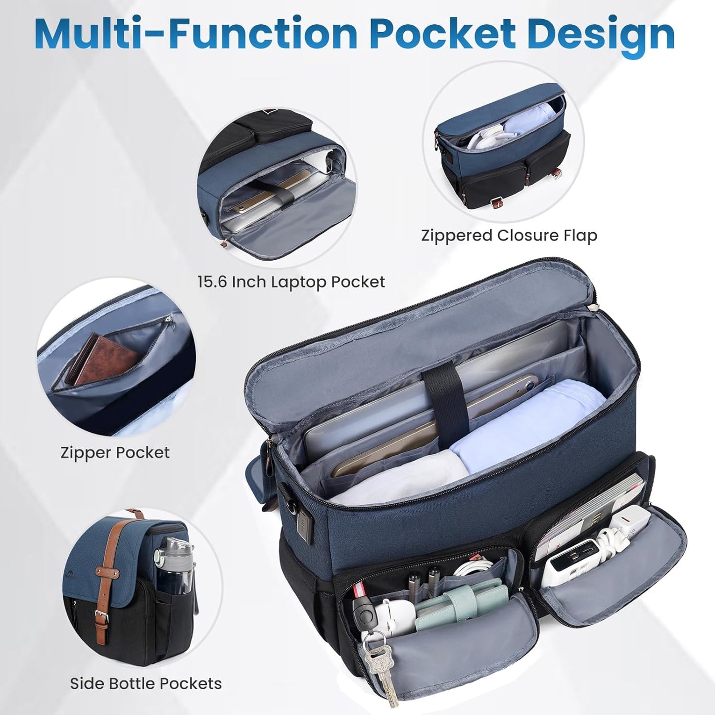 The shoulder bag has a softly padded laptop pocket that holds up to a 15.6 inch laptop and securely protects your device during everyday use.