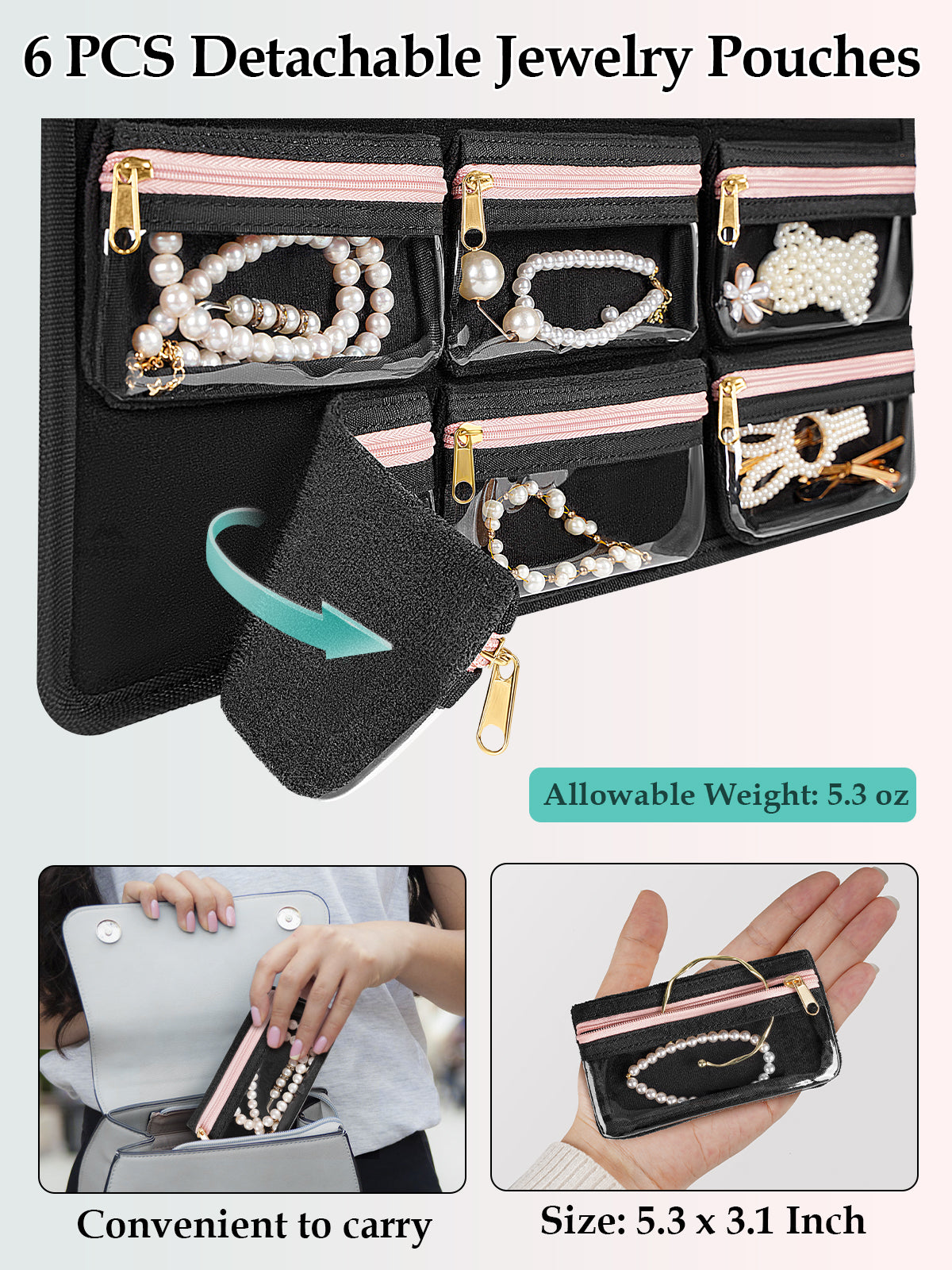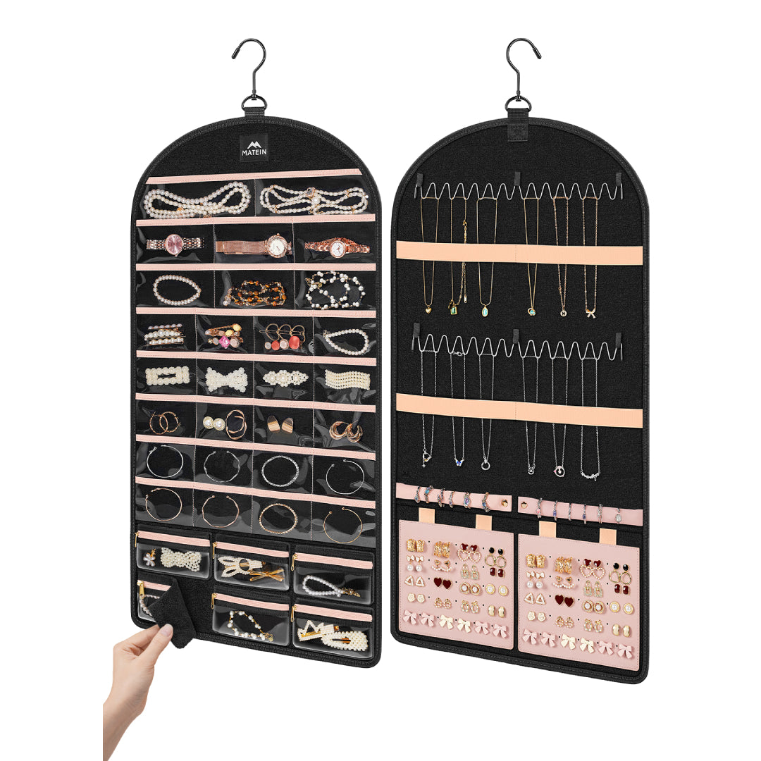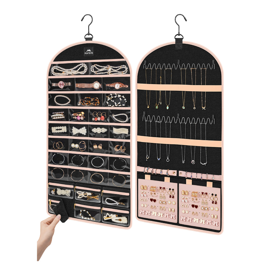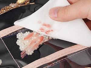 Clear PVC pockets in this necklace storage hanger are dust-proof, easy to wipe, and clearly display your jewelry.