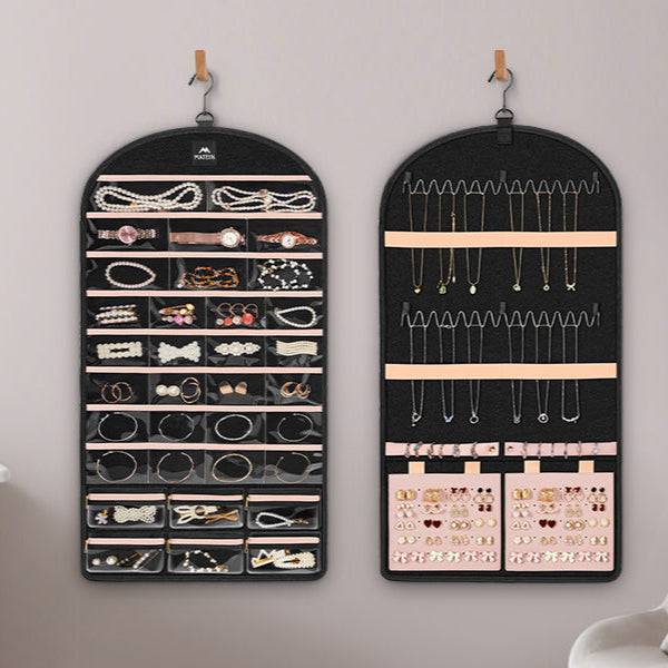 Jewelry hanger uses soft polyester fabric as the base, effectively preventing scratches and keeping your jewelry in great condition.